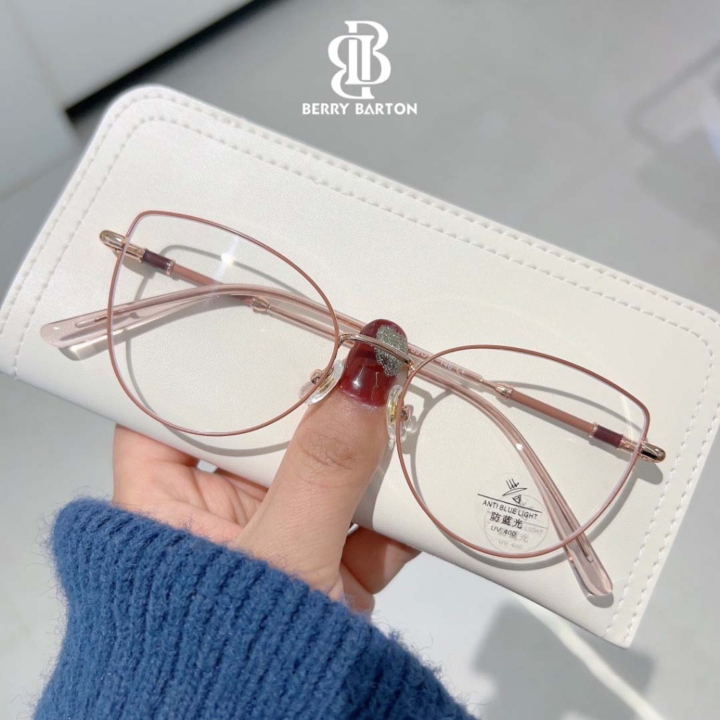 Berrybarton Kacamata Bluecromic Minus Anti Radiasi Blueray Photocromic Fashion Wanita Frame Cat Eye Metal Anti Silau Komputer HP