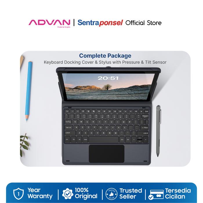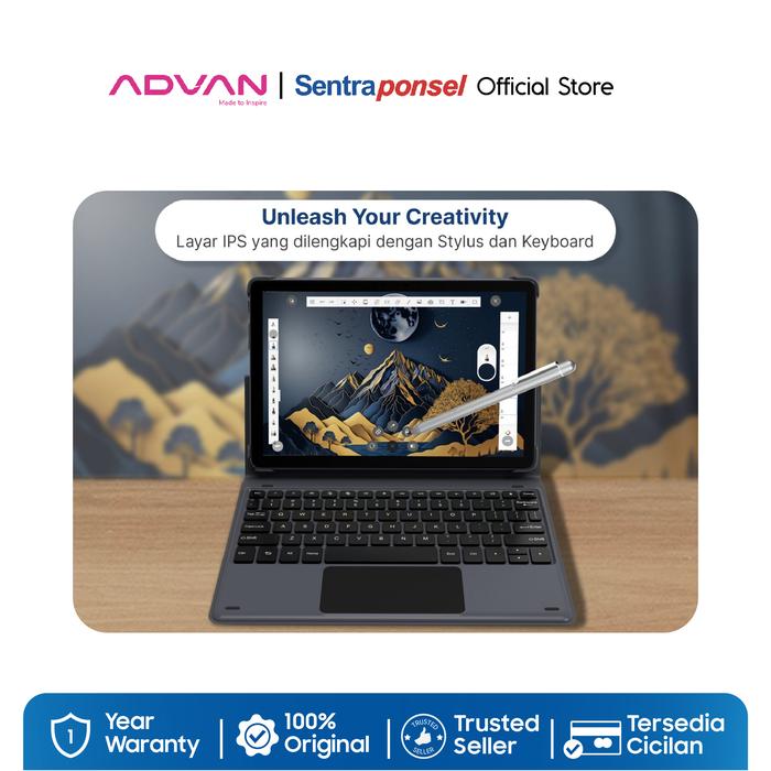 ADVAN TAB SKETSA 3 LAYAR 10.1” HD IPS 128GB+RAM 6GB TIGER T606 ANDROID 13 DUAL SIM CARD FREE KEYBOARD & STYLUS PEN - BLACK - GARANSI RESMI