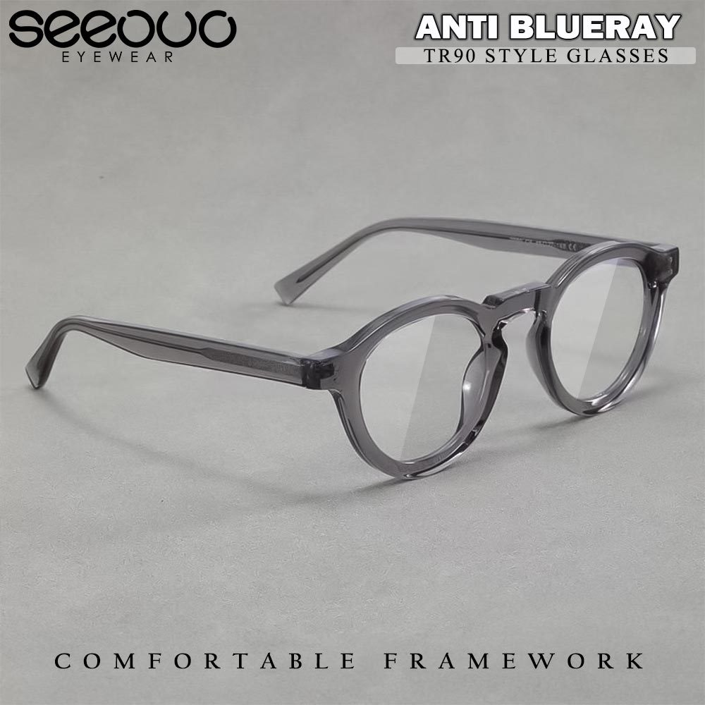 Seeouo Kacamata Antiradiasi Blueray Model Bulat Oval Frame Bold Stylish TR90 Kokoh Comfortable Glasses Fashionable Pria Wanita