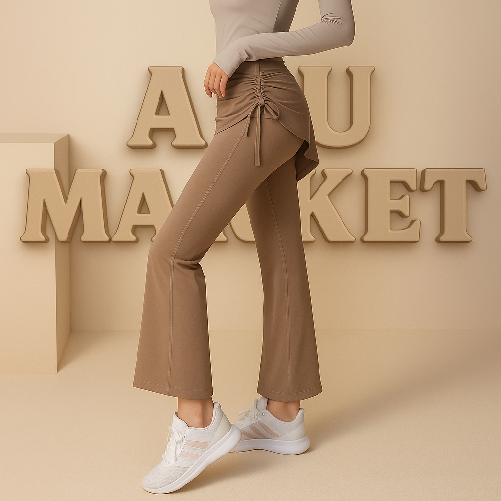 Aku Market 2-In-1 Legging Rok Celana Olahraga Wanita Highwaist Skirt Pant Tali Serut Samping Pilates Yoga