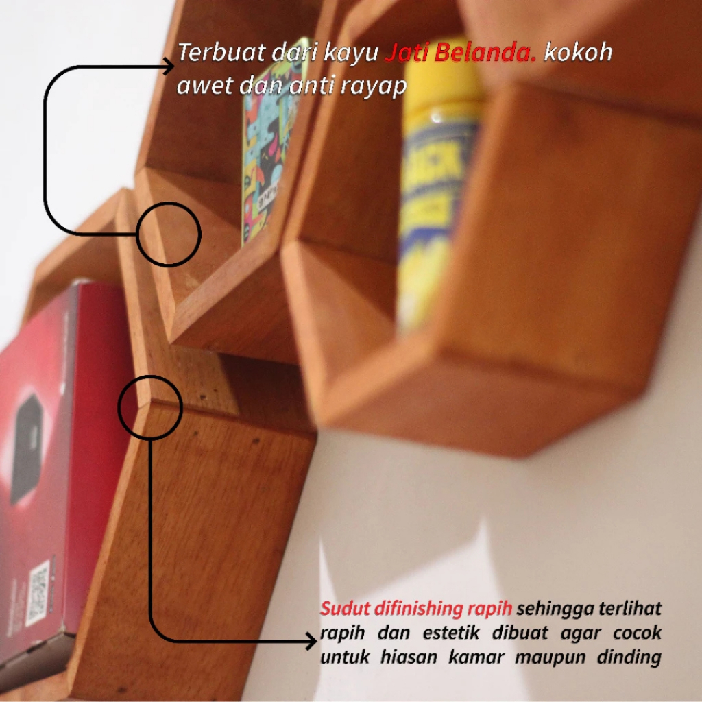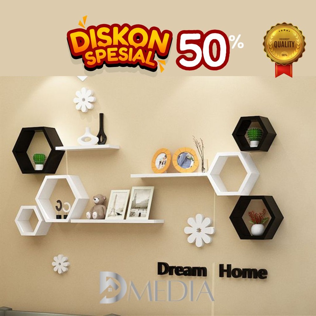 Rak DindingHiasan Dinding Aesthetic Rak Hexagonal & Ambalan Kayu Belanda Minimalis Dekorasi Rumah Rak Buku bunga kayu ja