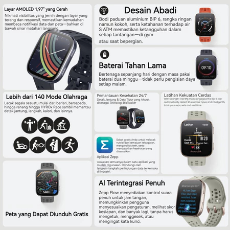 [Mall] Jam Tangan Smartwatch Original Smartwatch Amazfit Jam Tangan Pria Smartwatch Bip 6 Jam Pintar 46mm GPS 140
