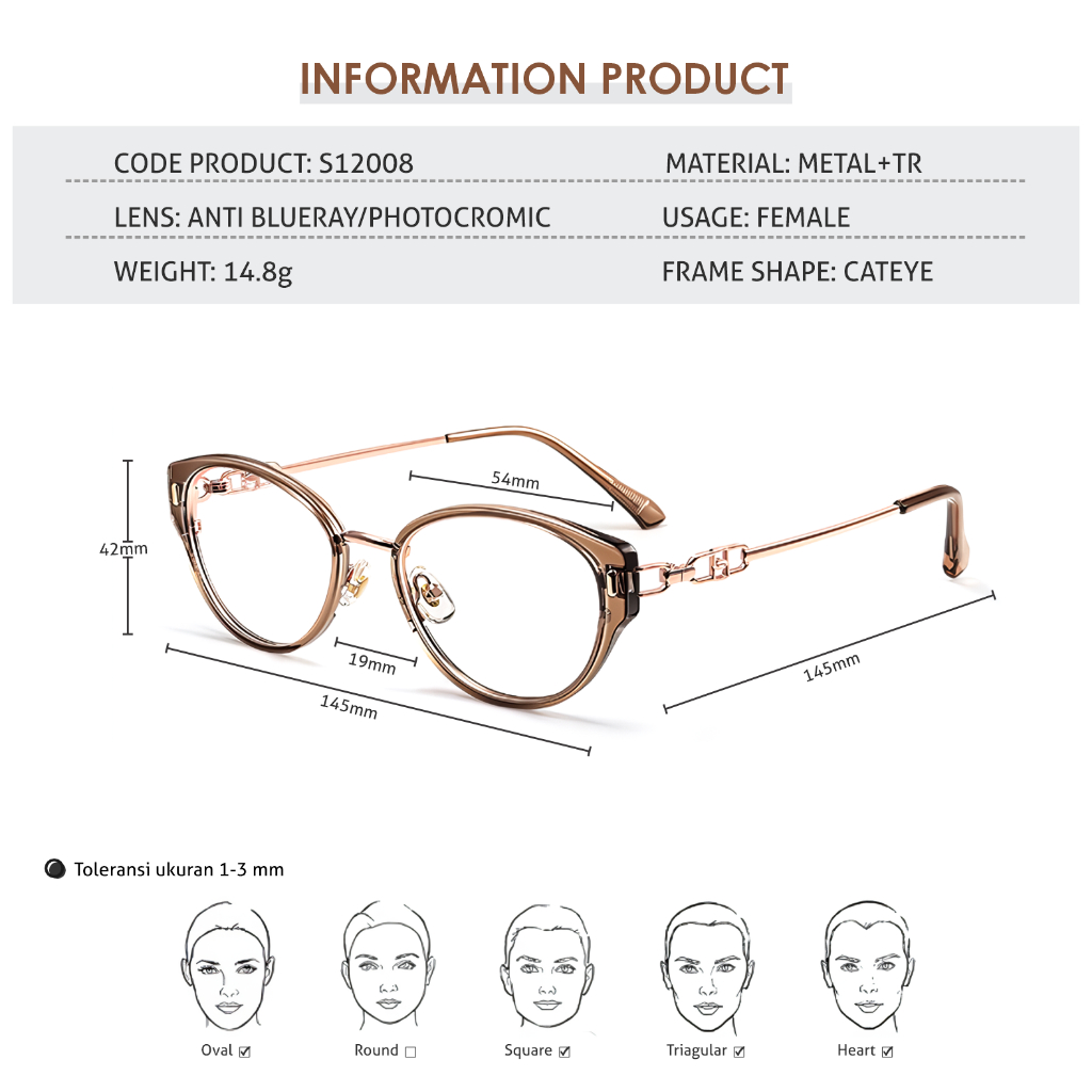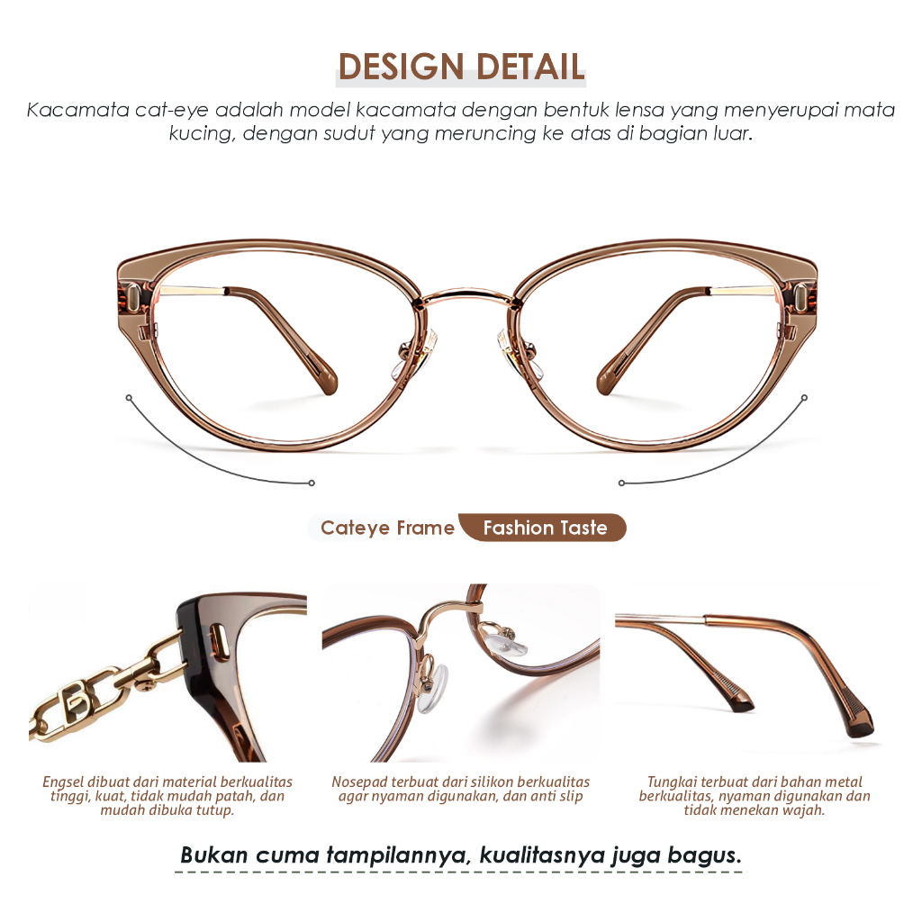 La Chapella Kacamata Model Cat Eye Bisa Minus Lensa Anti Blueray Photocromic Bluecromic Fashion Wanita Bahan TR90 Metal