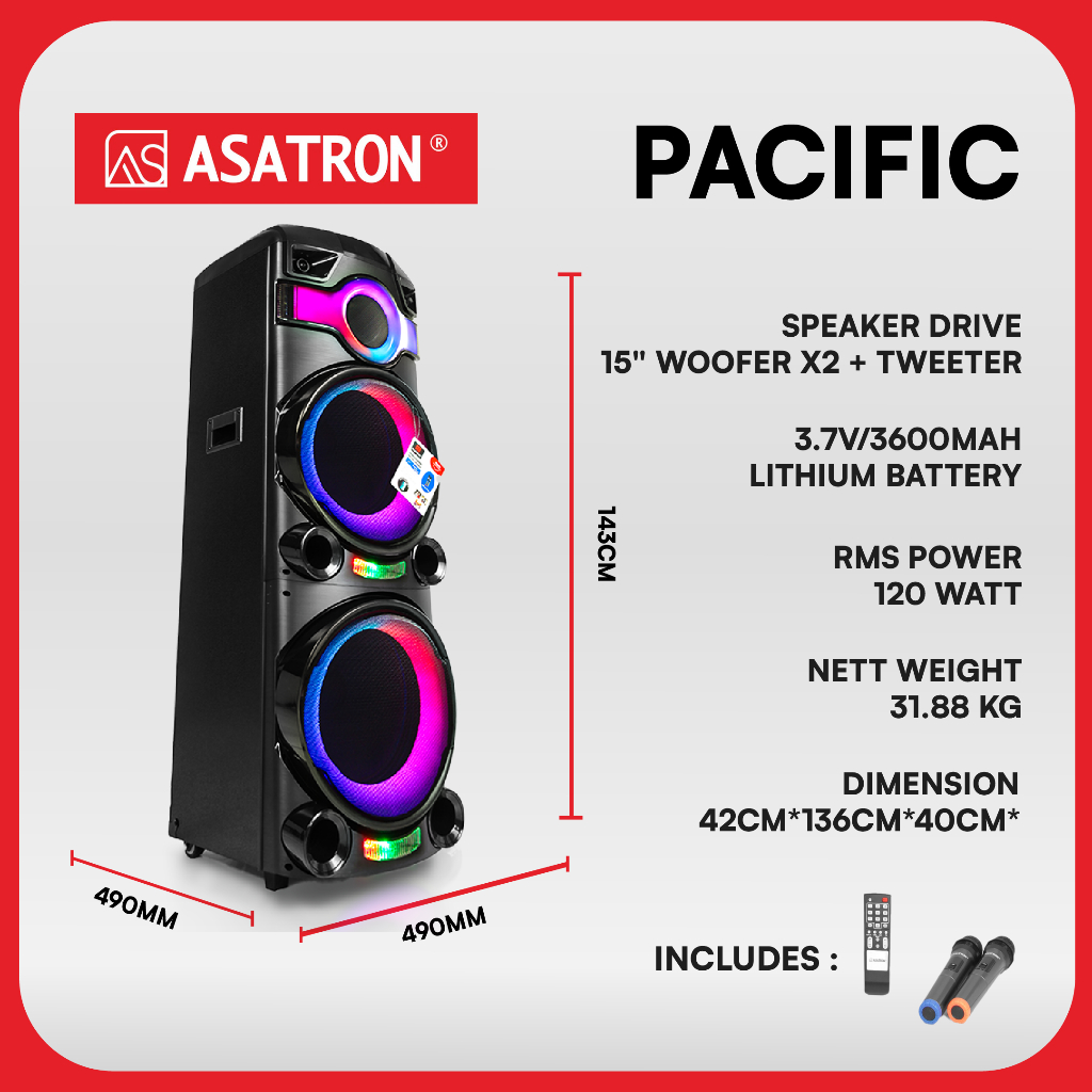 Asatron Pacific Dual 15 Inch Bluetooth Party Speaker