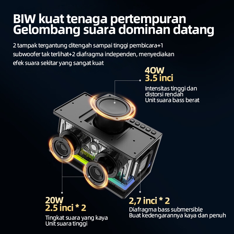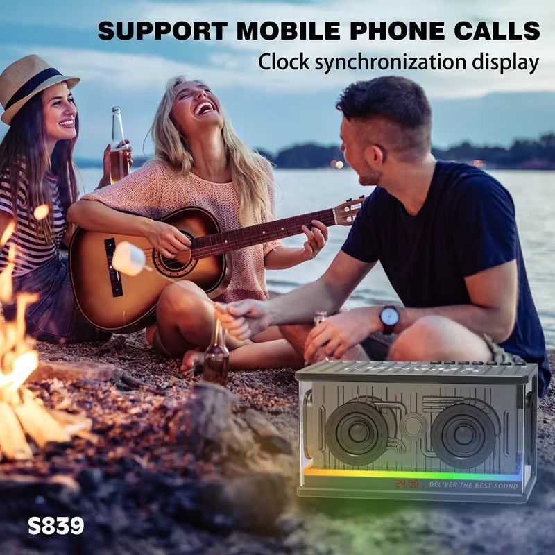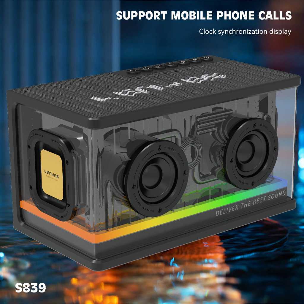 LENYES S839 80W Wireless Speaker Bluetooth 5.2 Transparan RGB Colorfull LED Light Portable TWS Jam