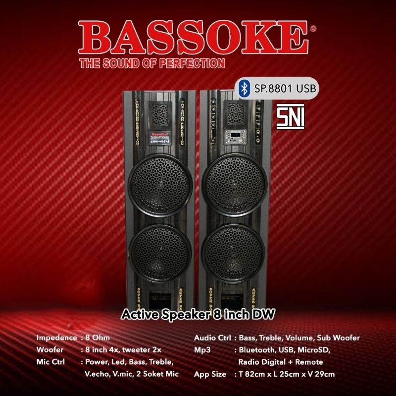 BASSOKE Speaker Aktif Bluetooth SP-8801 Subwoofer + Bluetooth