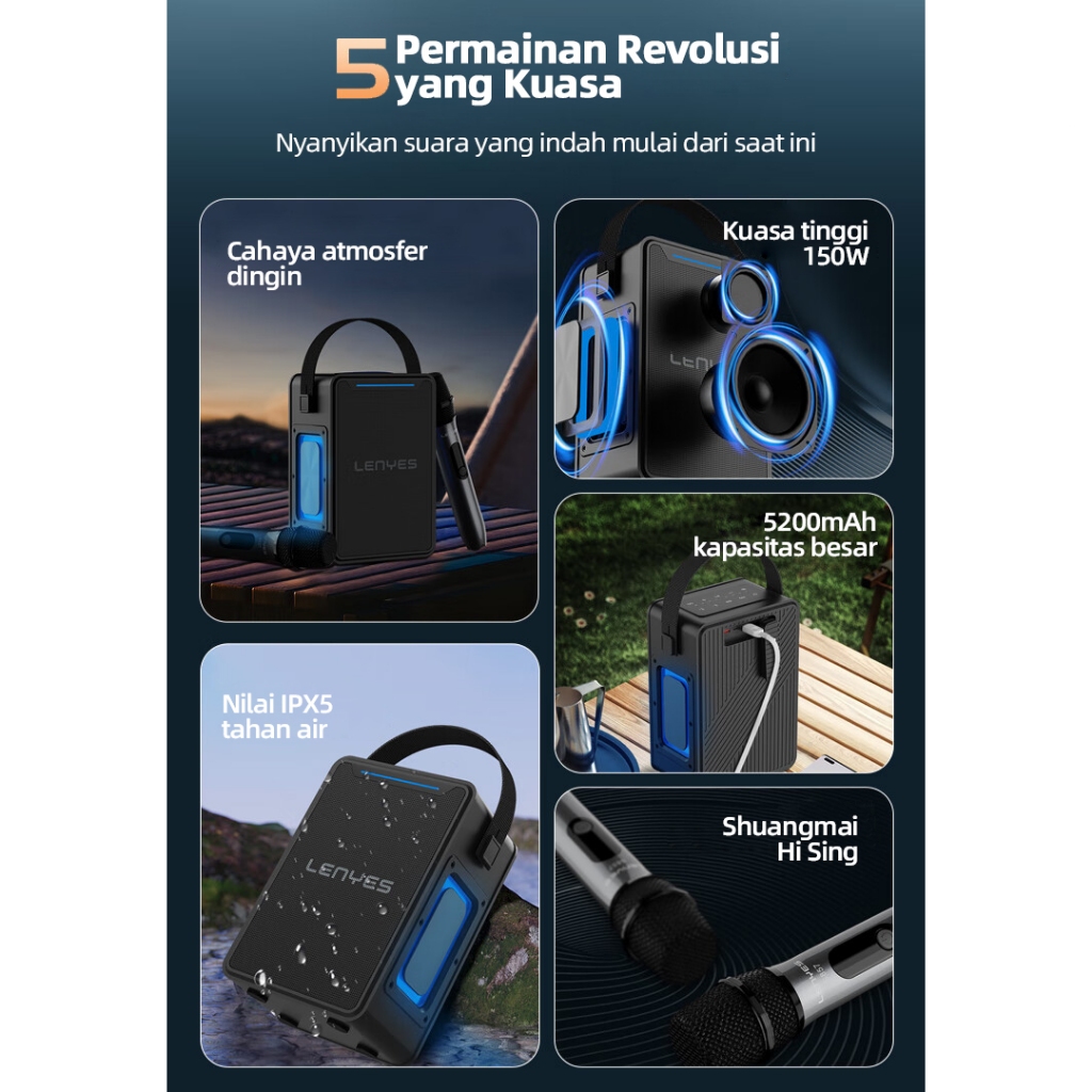 LENYES S857 150W KTV Wireless Speaker + Microphone Karaoke Bluetooth 5.3 Portable RGB Light DSP High Power TWS