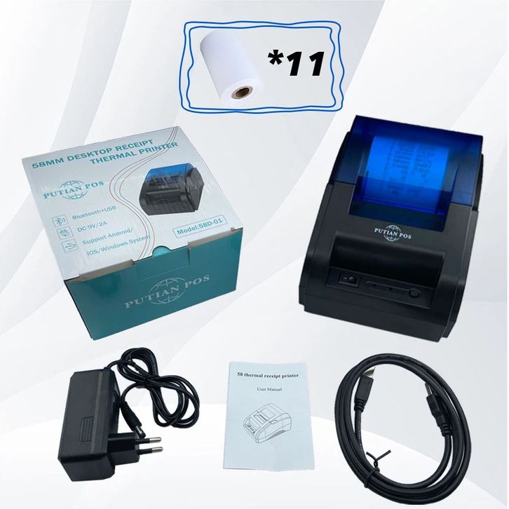 [Star] Alat Kasir Android PUTIAN POS Desktop 58mm Bluetooth Thermal Printer Cashier Bill Printer Android/USB free*1 roll