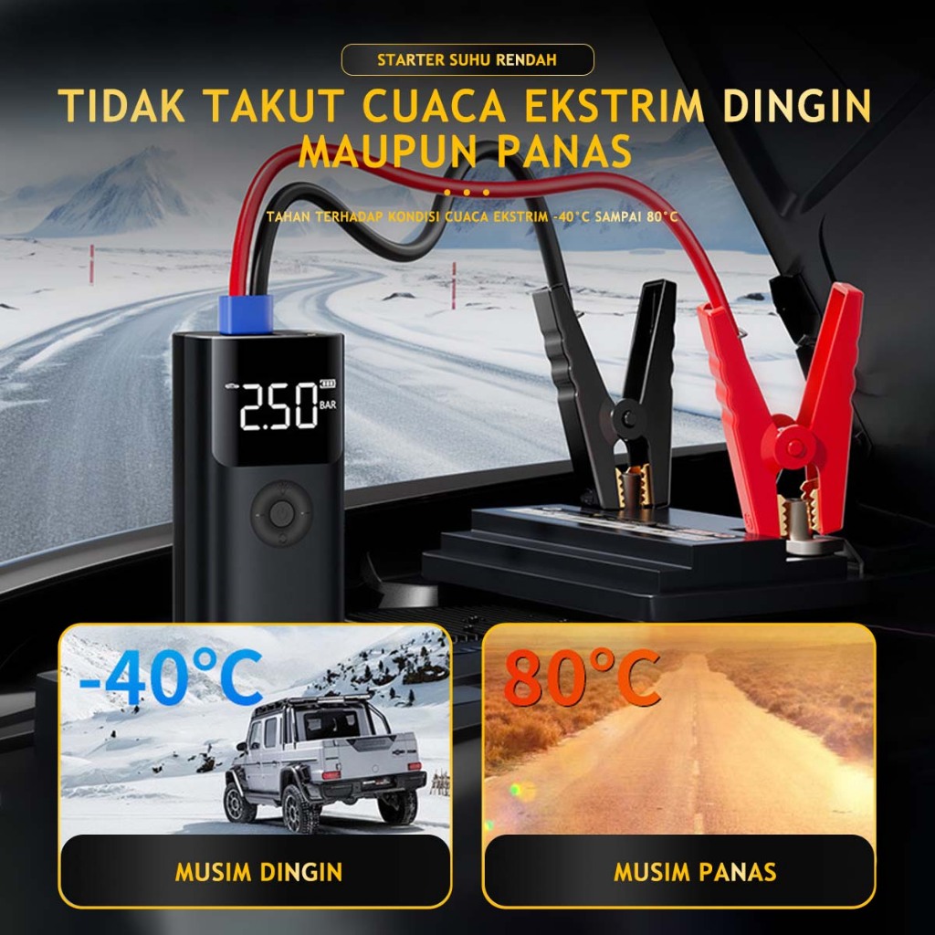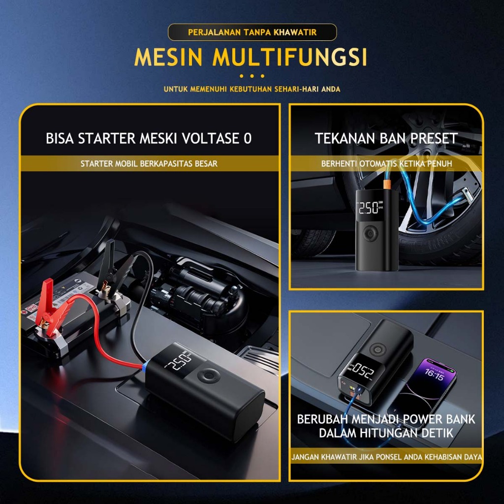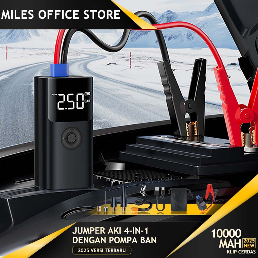 Jump Starter Multifungsi 4in1 Jumper Aki Mobil Portable 10000mAh Jemper Aki Mobil 12V dengan Powerbank dan Pompa Ban