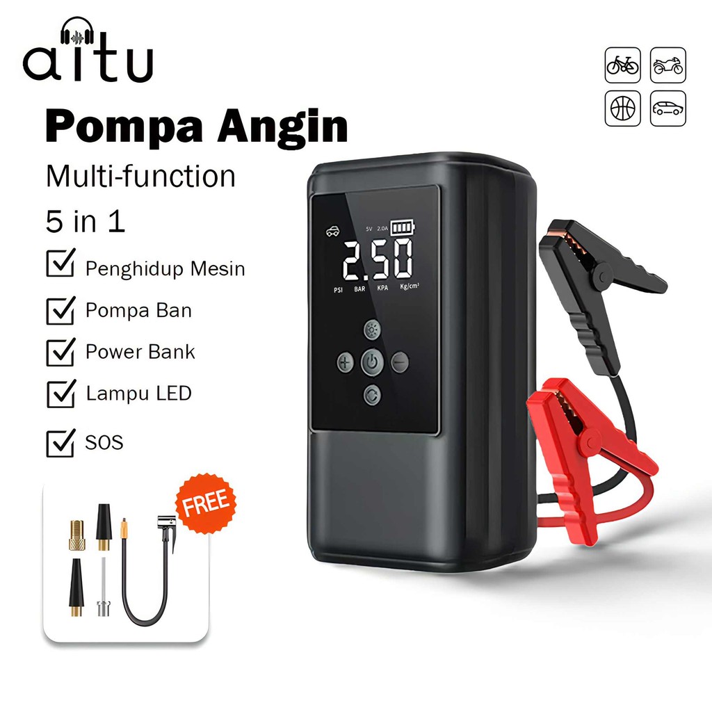 Aitu CYD24 Jumper Starter Aki Mobil Motor 10000 mAh Alat Pompa Ban Motor Dan Mobil Electric Pump Tire Inflator Portable