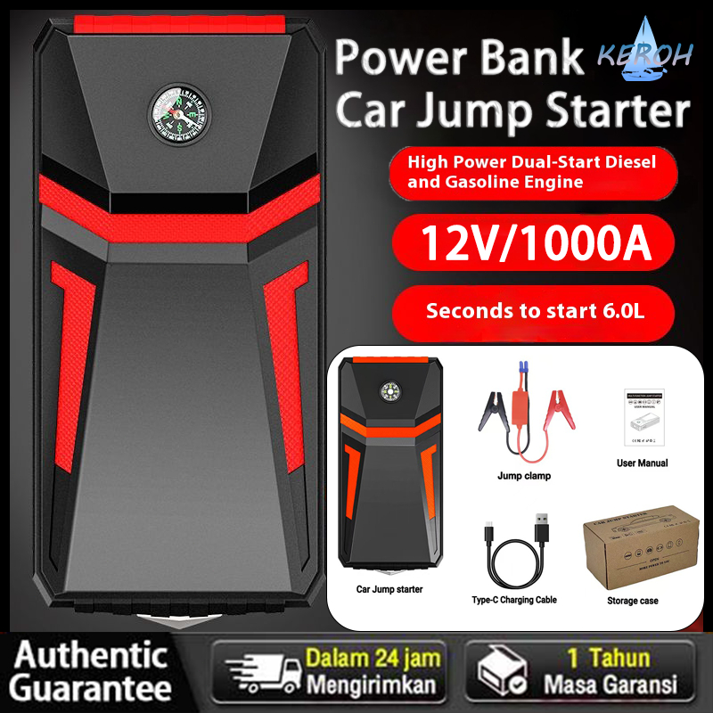 ✨✨ KEROH 12V Aki Mobil Jump Starter 10000mAh Bank Daya Darurat Portabel Multi-Fungsi yang Dapat/Dari Power Bank Jumper A