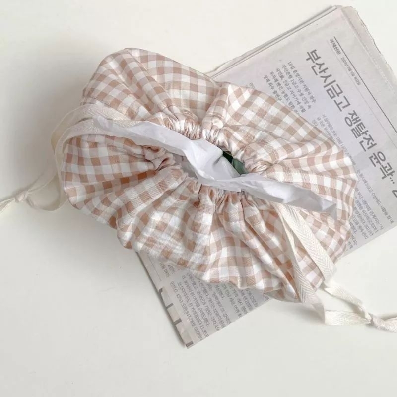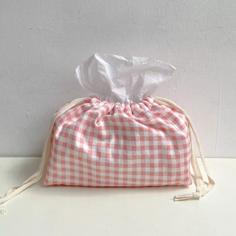Kotak Tempat Tissue cover tissue gingham pouch serut korea aesthetik tempat tisu unik