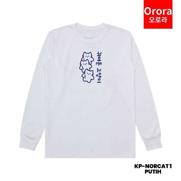 KAOS LENGAN PANJANG PRIA WANITA PREMIUM DISTRO KOREAN CUTE CAT - BAJU ATASAN SABLON PRIA WANITA - TPNORCAT1 HITAM, S