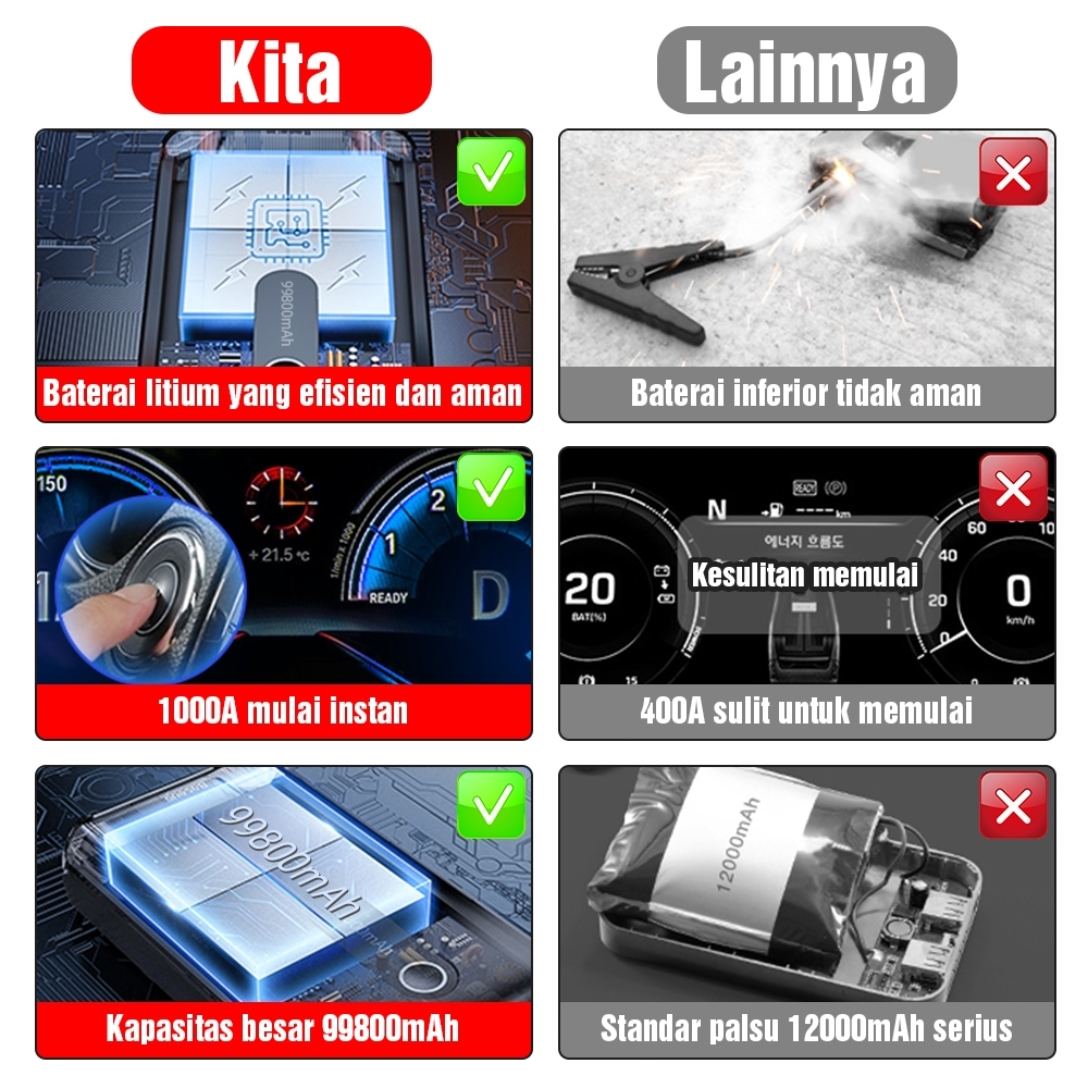 Jumper Mobil 12V 298000mAh Jumper Aki Mobil Kabel Jumper Booster Jamper Starter Aki Dan Pompa Charger Baterai Power Bank