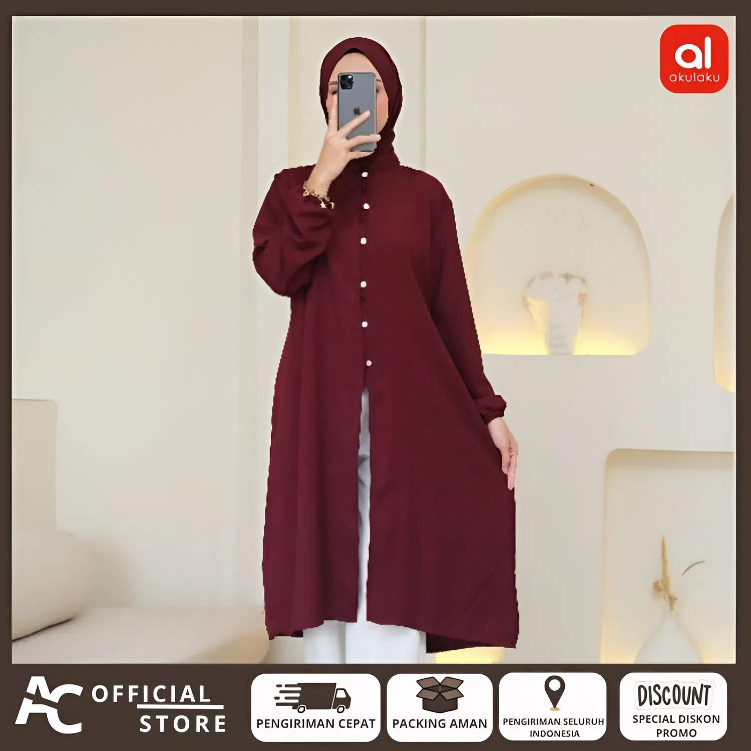 MALAYA LONG TUNIK WANITA KEKINIAN BAHAN KATUN TIFANY BAJU ATASAN MUSLIMAH OUTER BUSUI FRIENDLY TERBARU