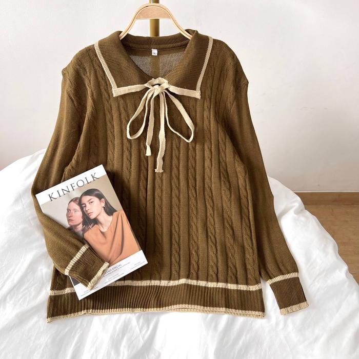 AKAVI - XALIA SWEATER JACQUARD SUPER JUMBO SWEATER BIGSIZE ATASAN OVERSIZE LD 120 130 140 150 (345GR) - BROKEN WHITE, XL
