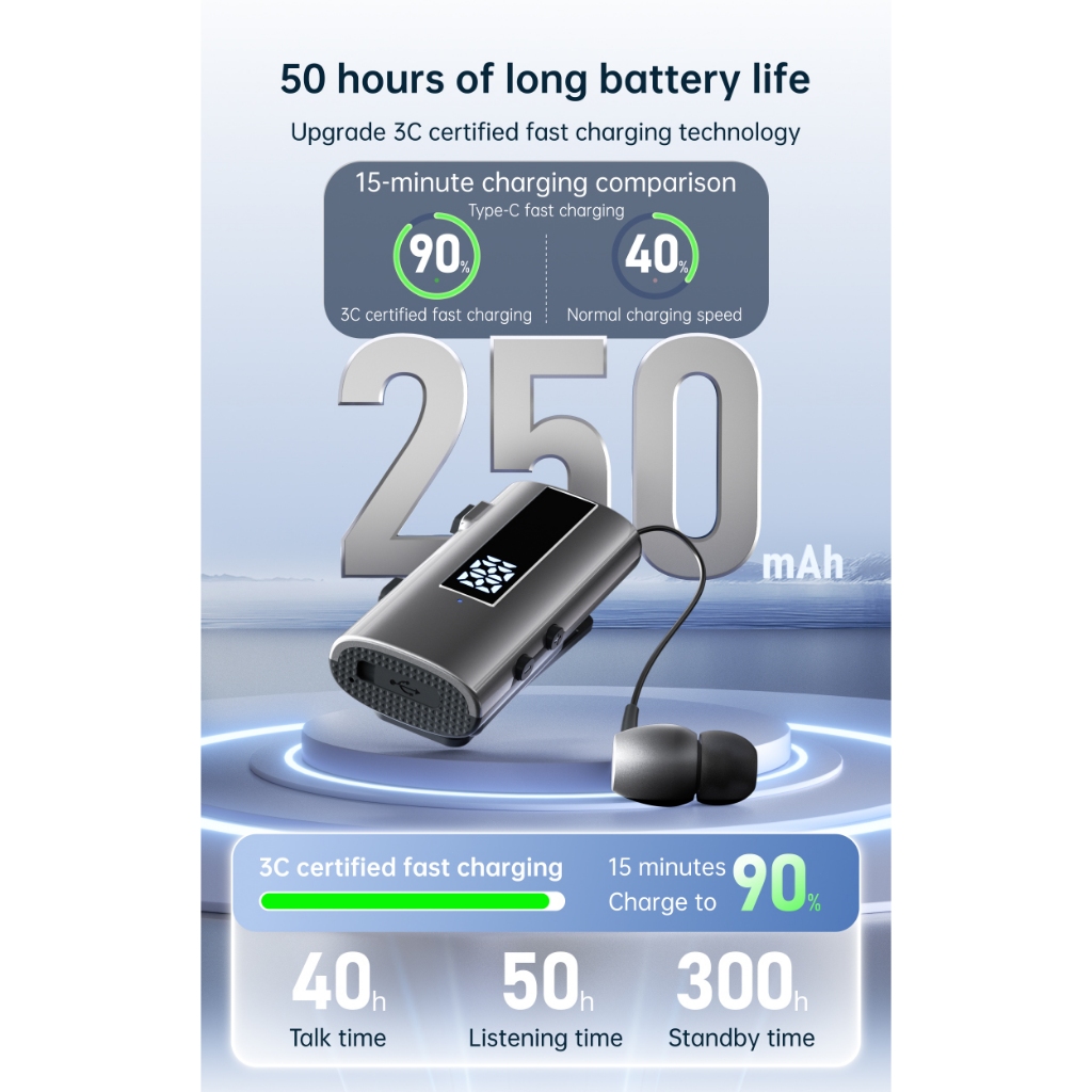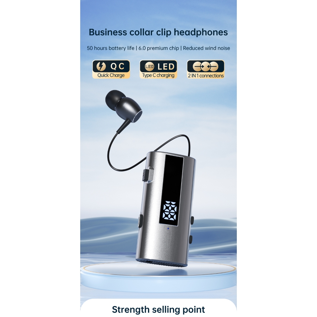 K92 Headset Bluetooth Bisnis dengan Kabel Retractable Earphone Nirkabel dengan Mikrofon Bluetooth V5.2 Handsfree 30 Jam