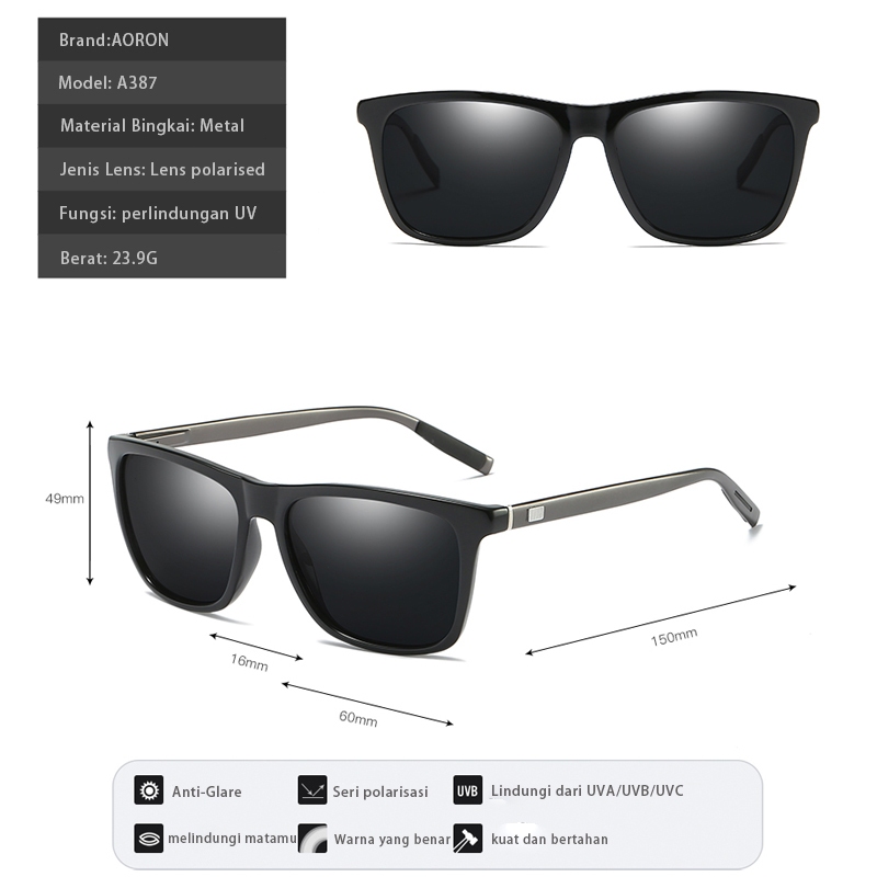 AORON Ori Kacamata Polaroid Sqaure fotokromik Menyetir Sunglasses A387T