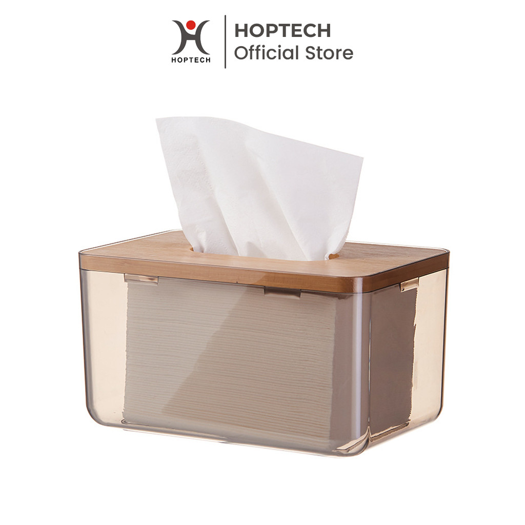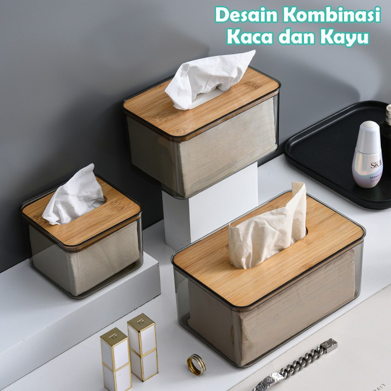 Kotak Tempat Tissue Hoptech - Kotak Tisu Aesthetic Transparan Kayu Modern untuk Kamar Mandi & Dapur Organizer Tisu