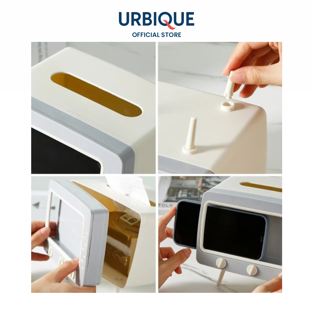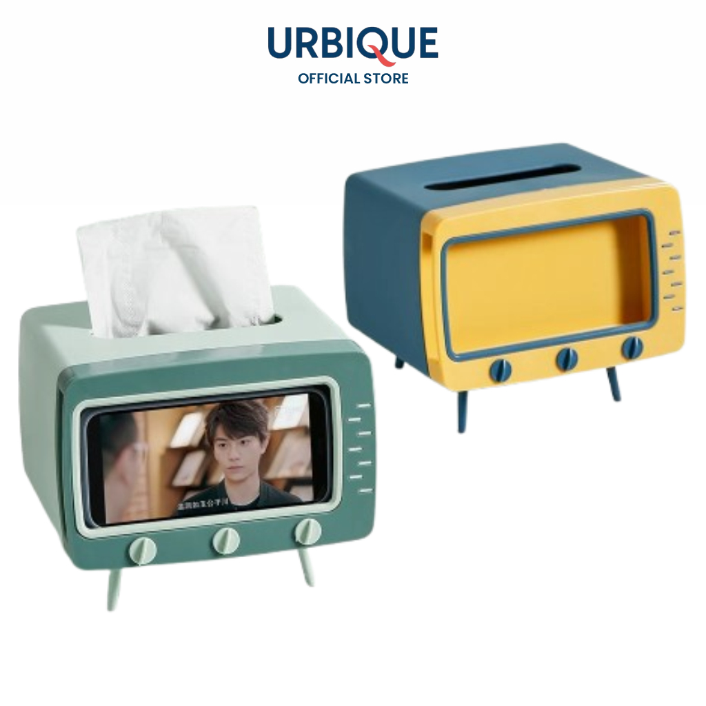 Kotak Tempat Tissue Kotak Tisu Unik Bentuk TV - Tempat Tissue Box Organizer + Holder HP - Lucu & Multifungsi