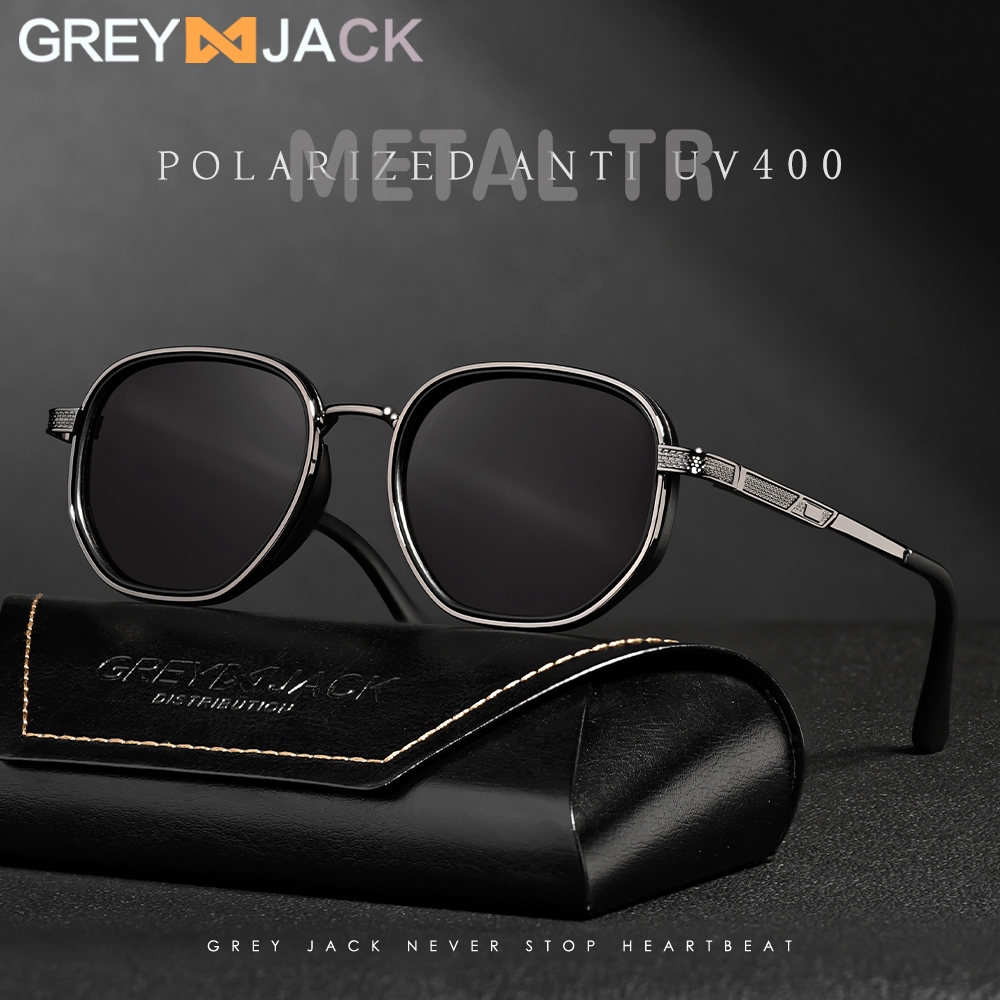 Grey Jack Kacamata Sunglasses Hitam Polarized Anti Silau UV400 Model Kotak Retro TR METAL Fashion Pria Dan Wanita Modis 6015