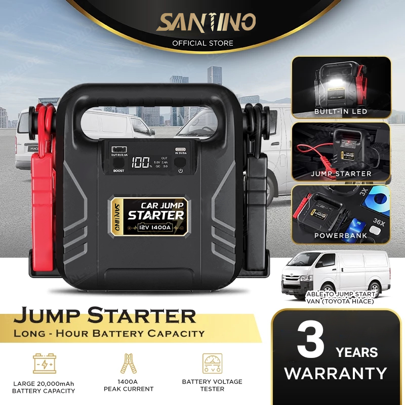 SANTINO JS004 PRO 20000 mAh Jump Starter Aki Mobil Motor Power Bank Jumper Aki Alat Jamper Aki Power Bank Mobil Jemper A