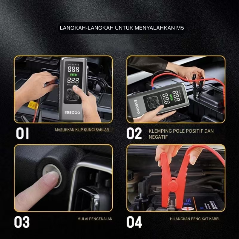 ESSGOO M5 Jumper Aki Mobil 10000mAh Pompa Ban Elektrik Portable Car Jump Starter