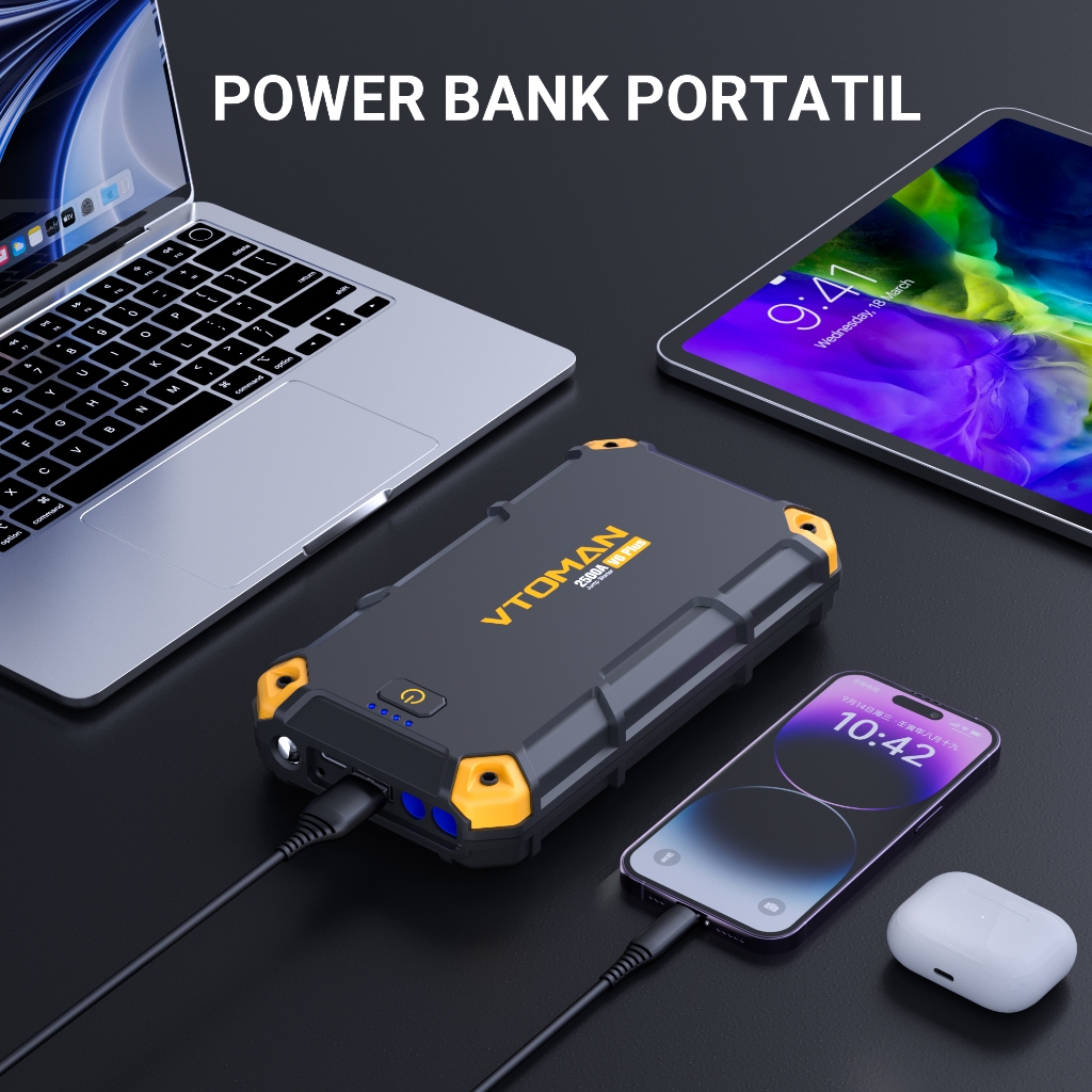 VTOMAN V6 PLUS 10000 mAh Jump Starter Aki Mobil Motor Power Bank Jumper Aki Alat Jamper Aki Power Bank Mobil Jemper Aki