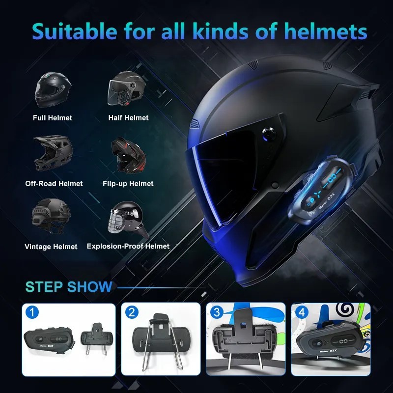 Intercom D3X Music Sharing Bluetooth Headset Helmet Sepeda Motor Tahan Air Waterproof IPX6 Half Duplex