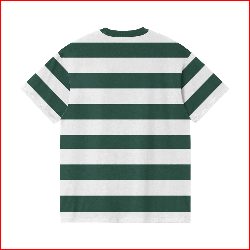 Secondly.id - Kaos Salur Garis Besar Lengan Pendek Jumbo Tshirt Stripe Hijau Putih 24s