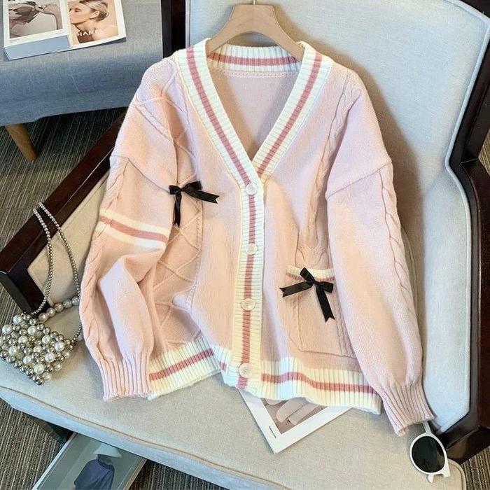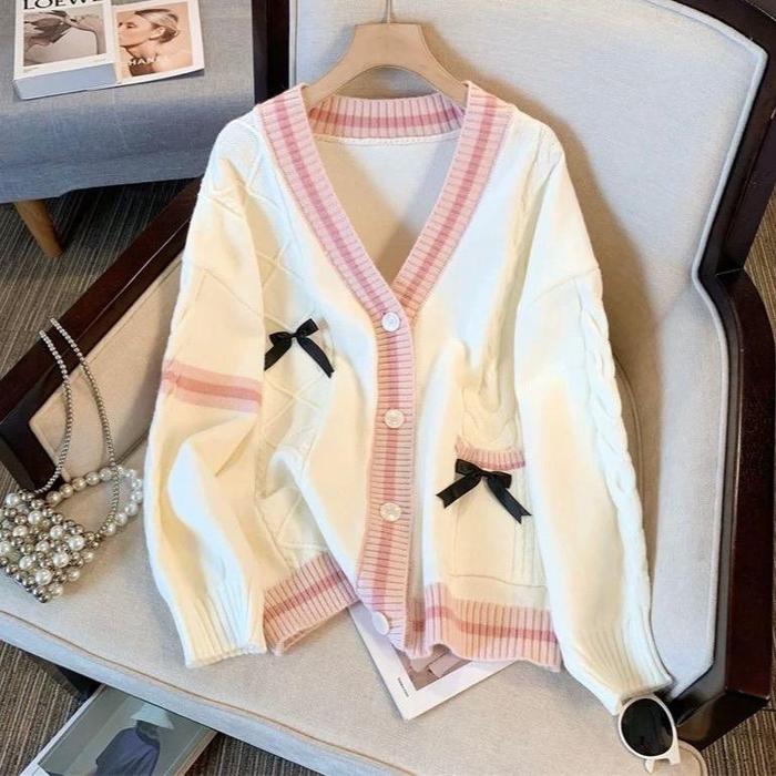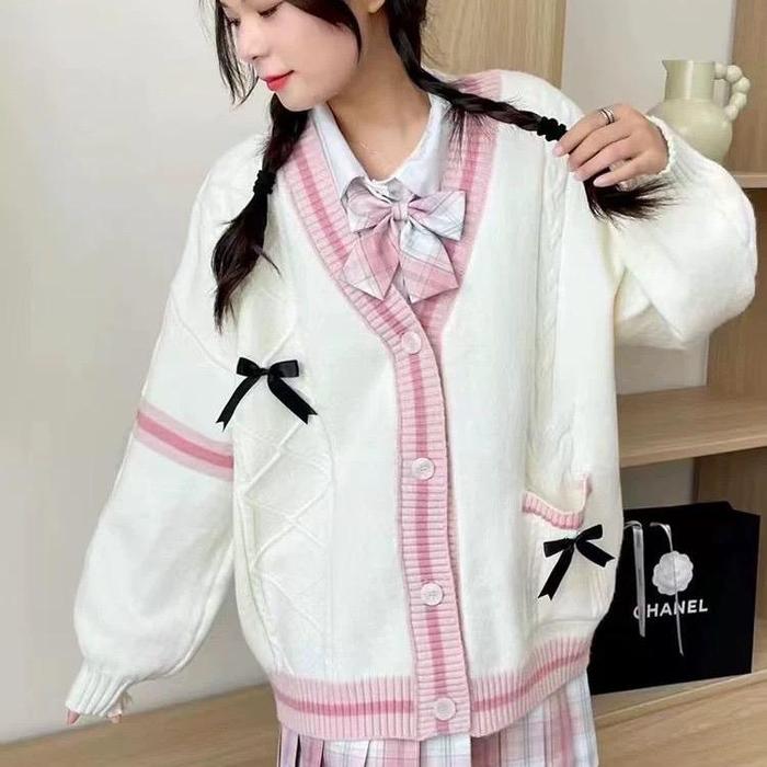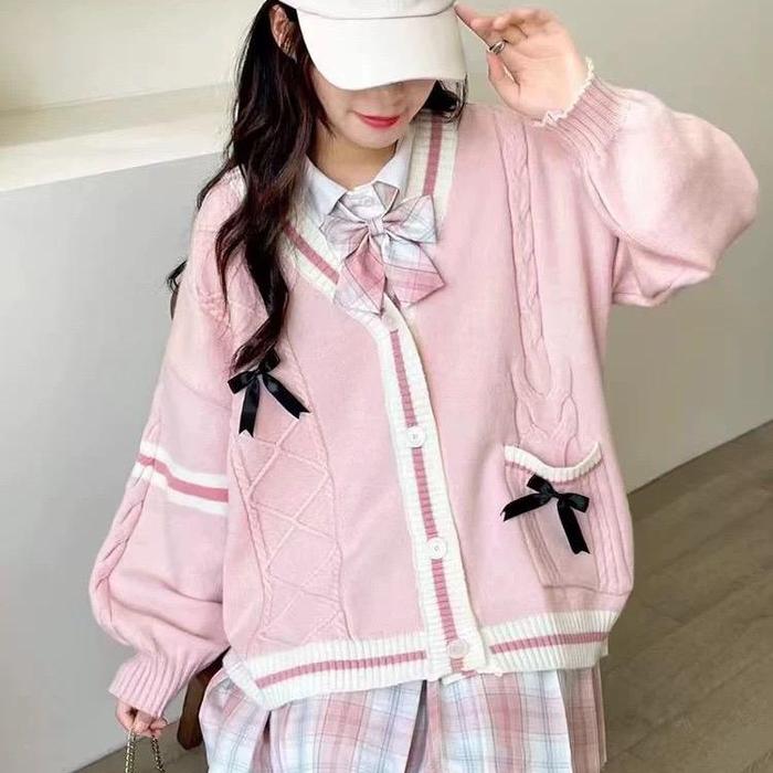 CARDIGAN SWEATER RAJUT PITA 303 RAJUT VNEC ATASAN WANITA OVERSIZE KANCING CASUAL - PANJANG - 303 PUTIH