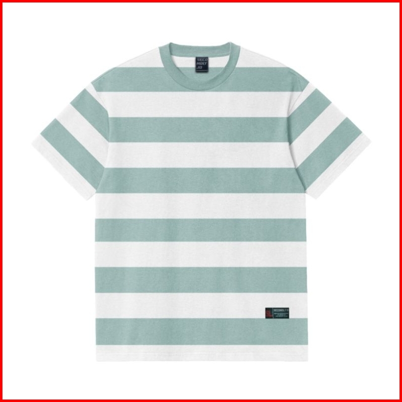 Secondly.id - Kaos Salur Garis Besar Lengan Pendek Jumbo Tshirt Big Stripe Sage Green 24s
