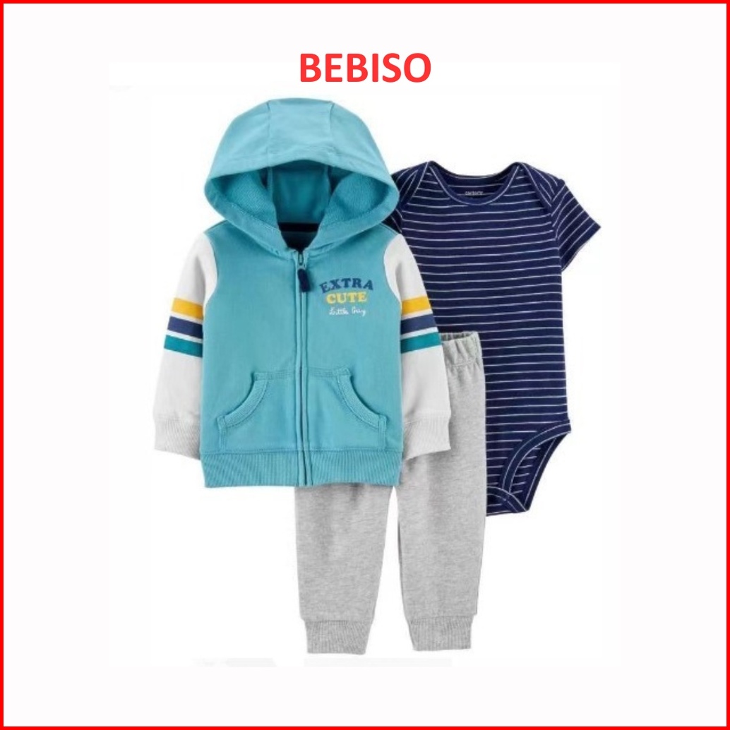Bebiso - Bodysuit Celana Extra Cute Blue Setelan Anak Laki-laki 3in1 Jaket Usia 6 Bulan - 2 Tahun