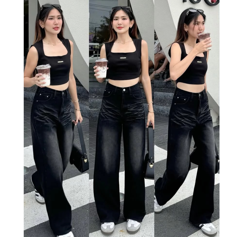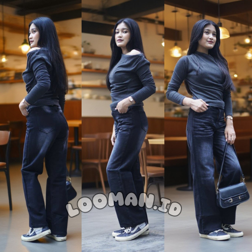 Highwaist Loose jeans |celana kulot jeans wanita |korean baggy straigh jeans