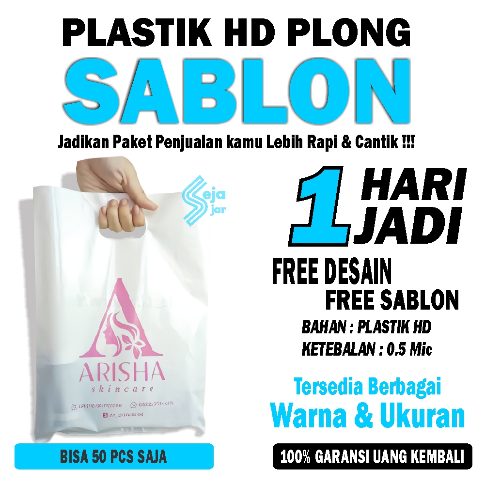 SEJAJAR 50 PCS PLASTIK SABLON PACKING OLSHOP PLONG 20X30 MURAH FREE DESIGN