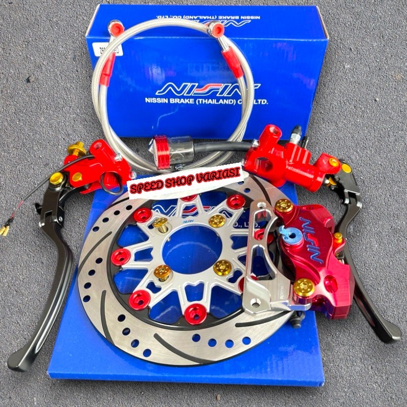 PAKET MASTER REM NIZZIN + PIRINGAN DISC 220MM + KALIPER 2PISTON + SELANG REM 90CM + BAUT DISC + BREKET 220MM BEAT VARIO