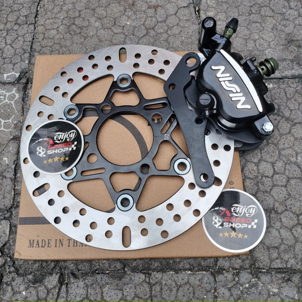 Paket Breket / Bracket Plat Besi Plus Kaliper Nissin Samurai Disc 220 motor Beat Scopy Vario Lubang 4