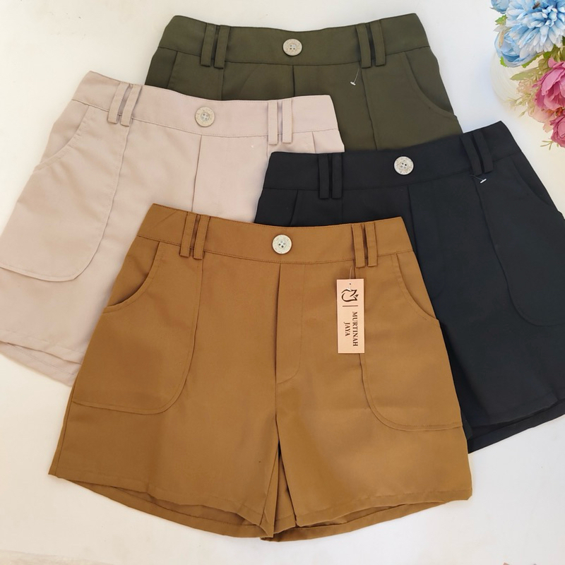Celana pendek Celana pendekHOT PANTS Saku Tempel Korean style mini short Jumbo Muat BB 85+ / Celana Pendek Wanita Terbar