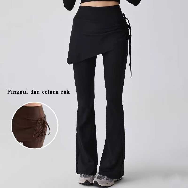 Dora 2-In-1 Highwaist Legging Rok Dengan Tali Serut Samping Celana Olahraga Wanita Untuk Pilates Dan Yoga