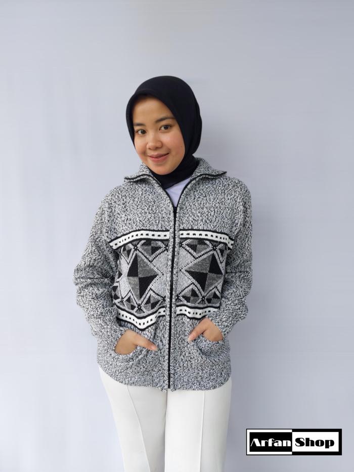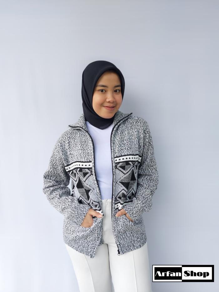 JAKET RAJUT RESLETING LEHER TINGGI TEBAL PREMIUM PRIA WANITA | SWEATER KNIT ZIPPER TURTLENECK MOTIF SAKU | KNITWEAR BAJU HANGAT IBU - HITAM