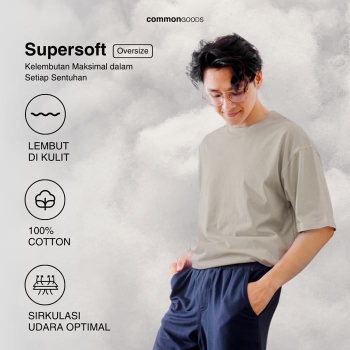 Common Goods Short Sleeve Super Soft Oversize T-Shirts - Cloudy Grey Kaos Pria Distro Original
