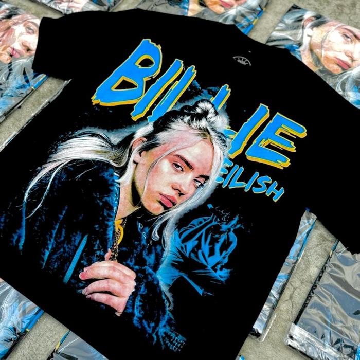 T-Shirt Billie Eilish Bad Guy - 16S Full Cotton 240GSM Kaos Boxy Oversized Hitam Vintage Unisex Kaos