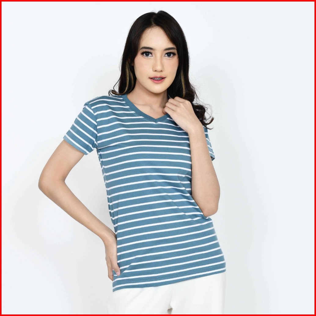Sf V Neck Stripes Blue Marinir Kaos Katun Stripe Kaos Salur Katun Premium South Formed