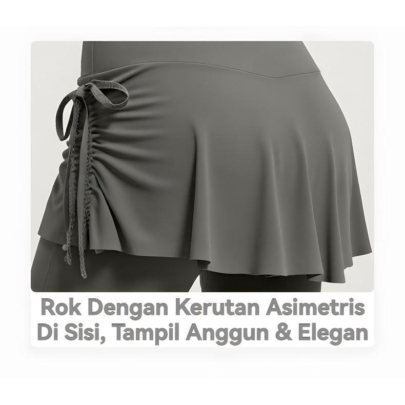 Celana Rok Fitness Palsu 2 In 1 High Waist Angkat Bokong Elastis & Nyaman