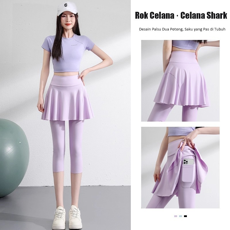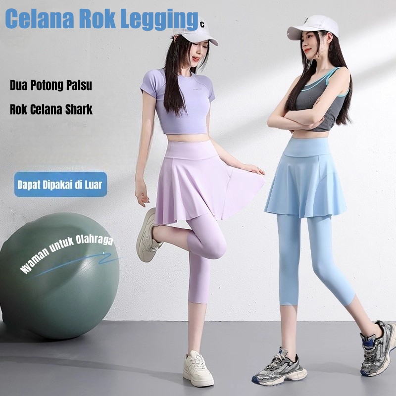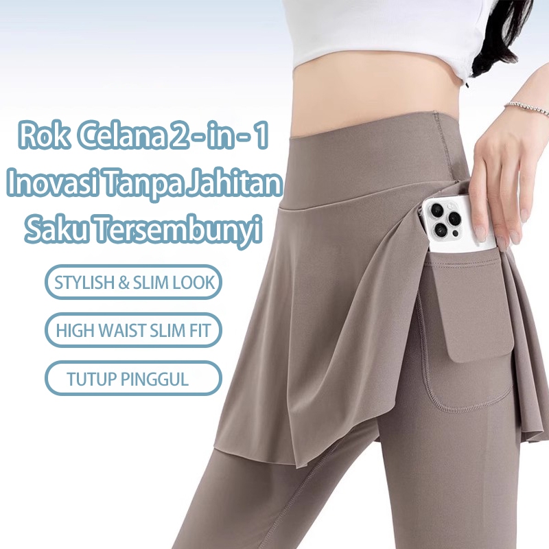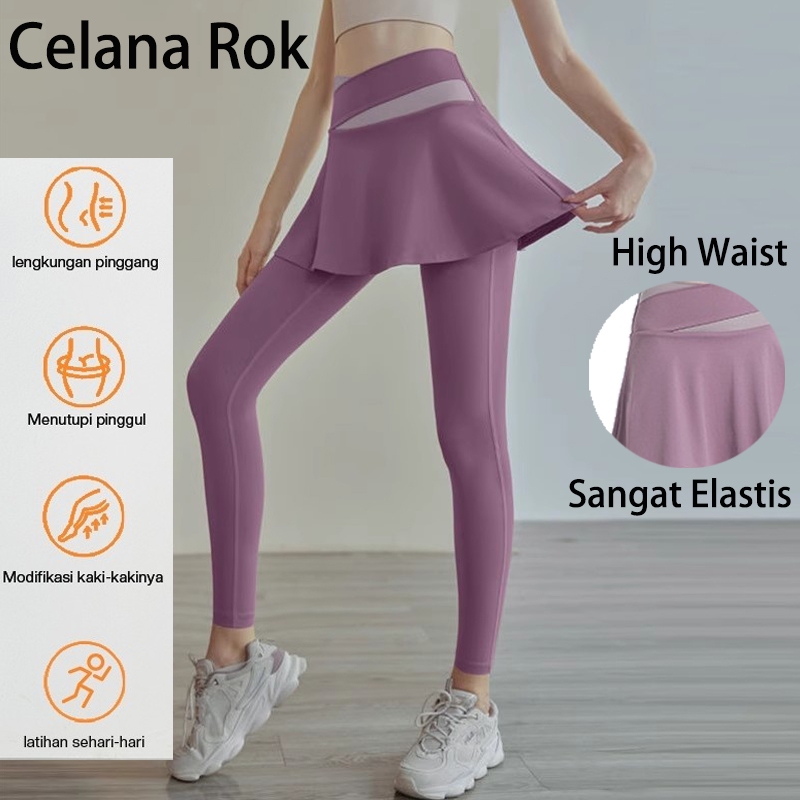 Celana Rok Legging Sport Wanita 2-In-1 - High Waist, Elastis, Cocok Untuk Yoga, Pilates & Olahraga Ringan