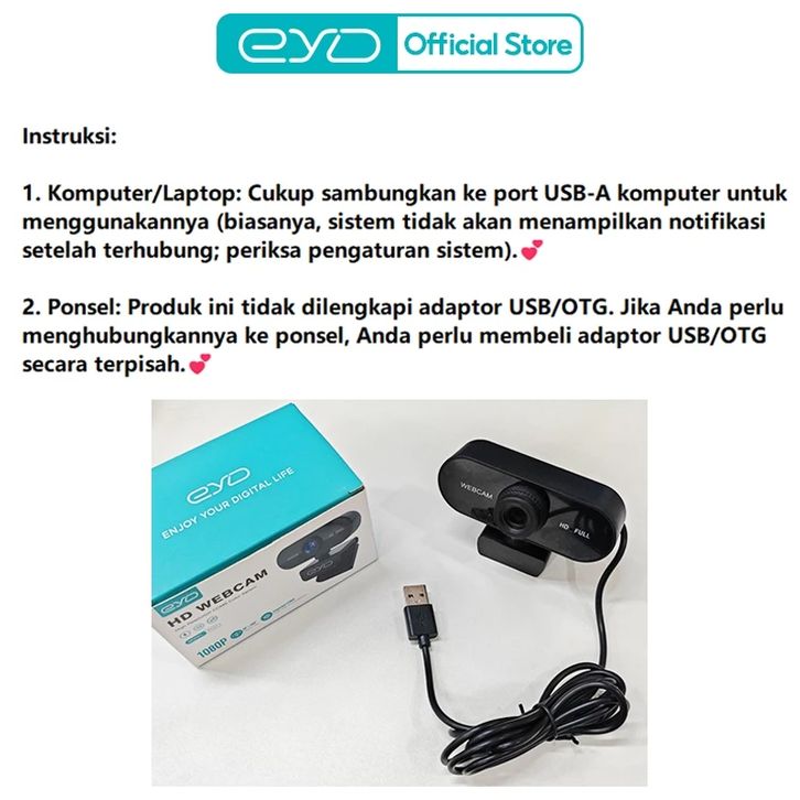 [Star] Webcam Laptop EYD USB Camera PC Full HD 1080P with 360 Degree Rotation and Microphone Live Webcam Zoom Conference