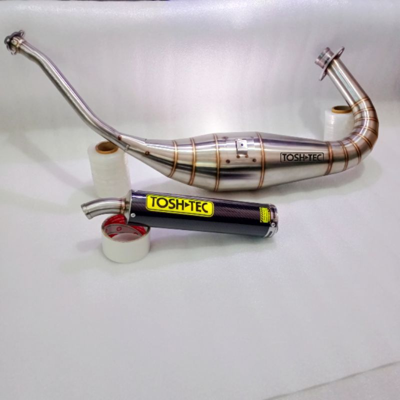 Knalpot racing ninja 150 R SS RR tosh-tec bahan stenlis stil anti karat silinser karbone model kobra