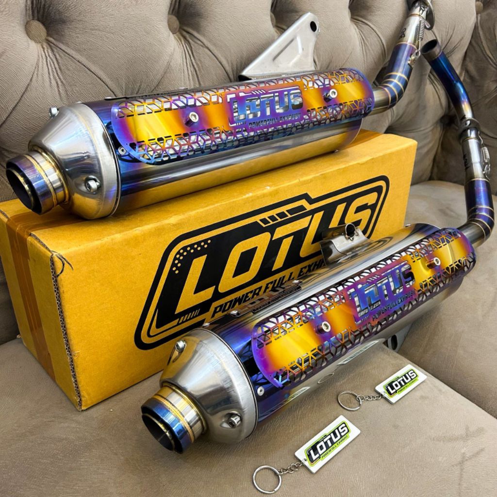 KNALPOT STANDAR RACING MONCONG SHIJIRO UNGU DAN MONCONG KENOCI TITAN ORIGINAL LOTUS 28 -38 BLUE GOLD STANLES FRE TAMENG