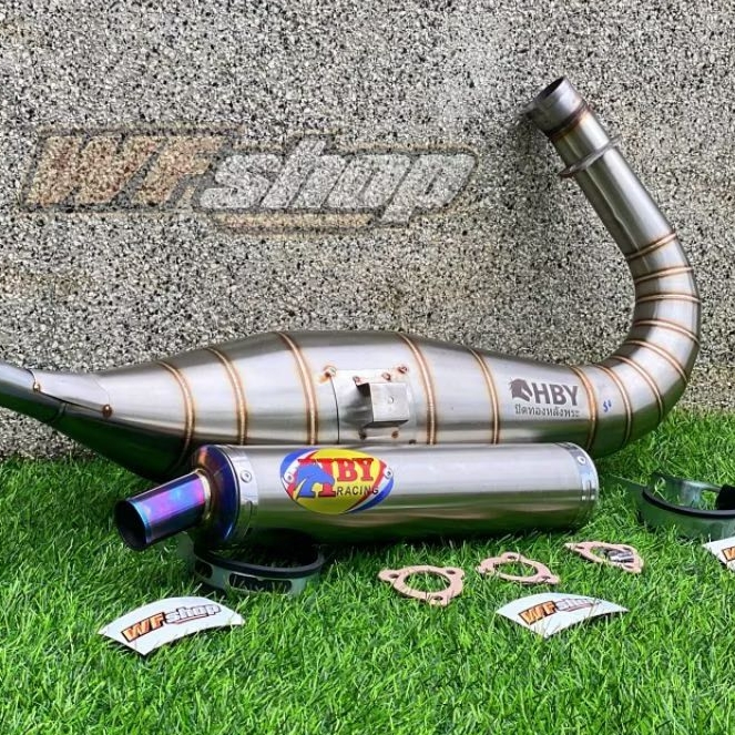 KNALPOT NINJA R RR SS HBY FULL STEANLIES TYPE MONCONG BLUE/PURPLE MIRING BAWAH