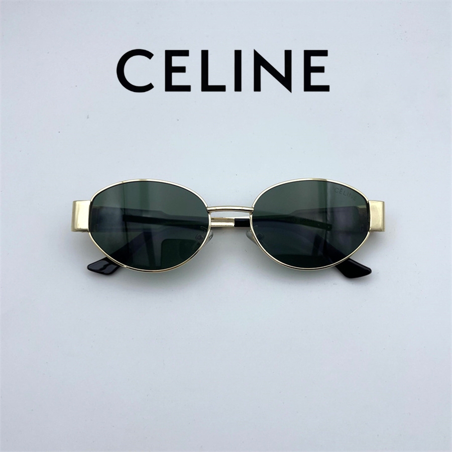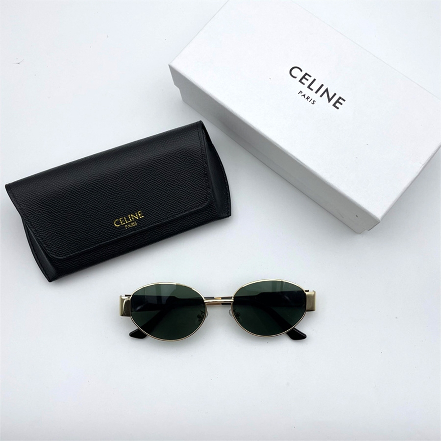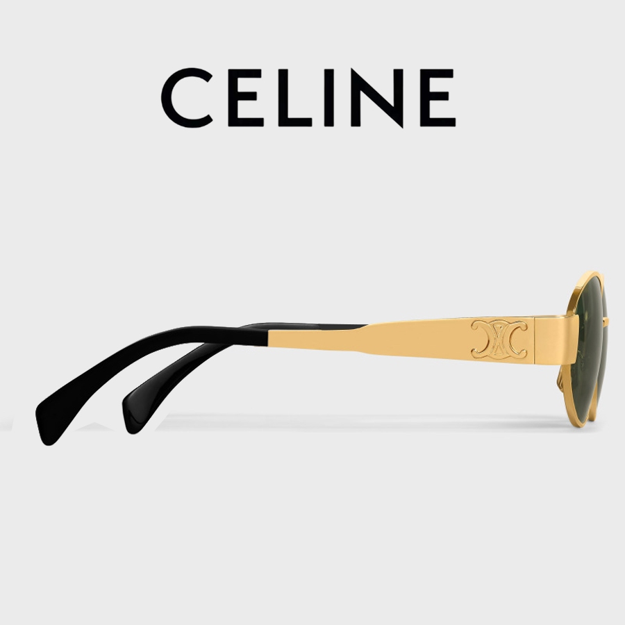 【100 PERSEN Original】Kacamata Hitam CELINE Sunglasses TRIOMPHE METAL CL8003 Metal Kacamata Vintage Polished Gold Green